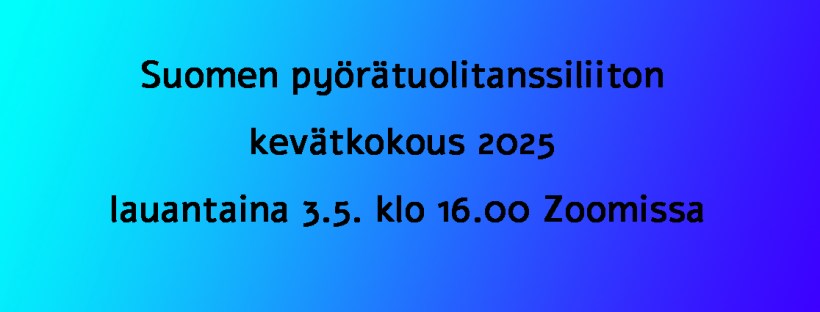 Tämän vuoden Suomen pyörätuolitanssiliitto PYTLI ry:n jäsenistön kevätkokous pidetään lauantaina 3.5.2025 kello 16.00 etänä Zoom-alustan välityksellä. Osallistumisellasi voit vaikuttaa ja olla kehittämässä liiton toimintaa.